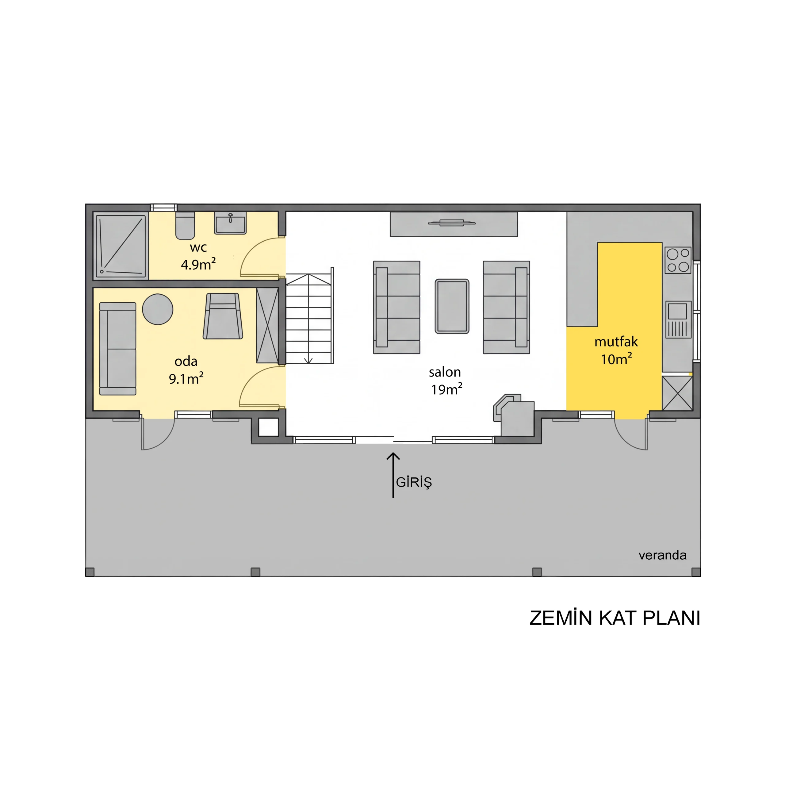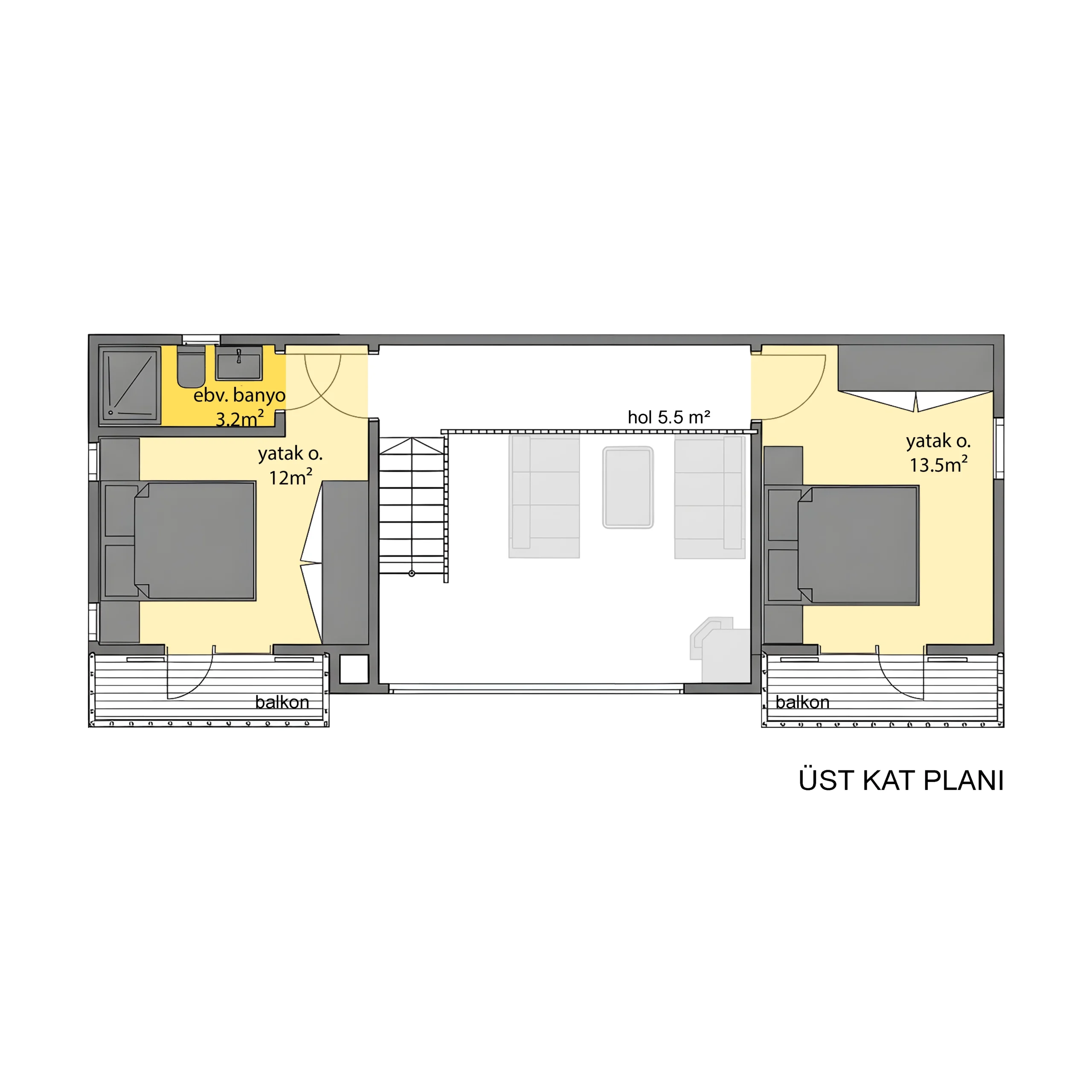 - Plan esnekliği: Alt kattaki oda düzenlemesiyle 2+1 plan, isteğe bağlı olarak 3+1’e dönüştürülebilir.